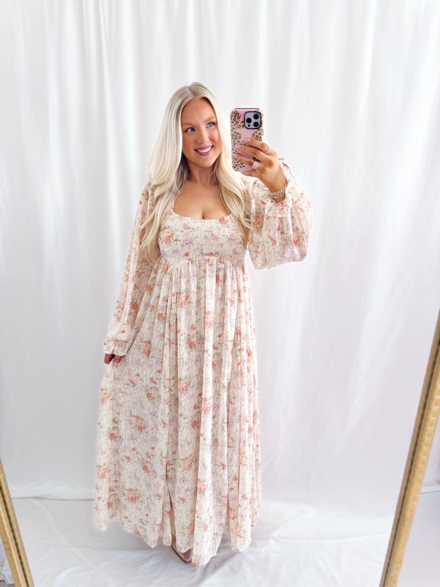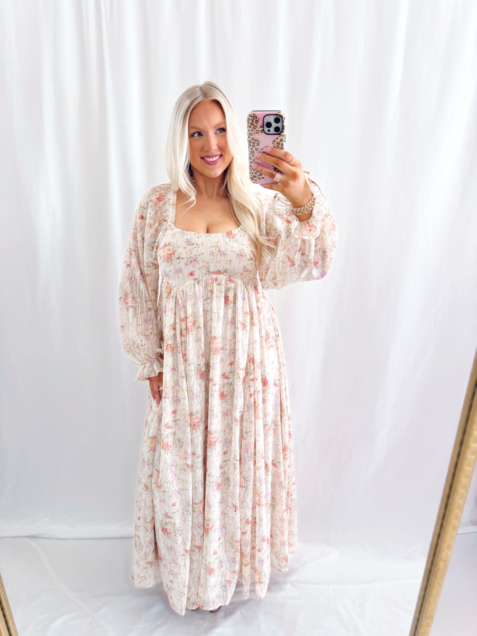 Sarah is 5'6, 6 months pregnant, currently a US size 8/10 pictured in a size medium. Back half of bust is smocked and stretchy. Brand: By Together