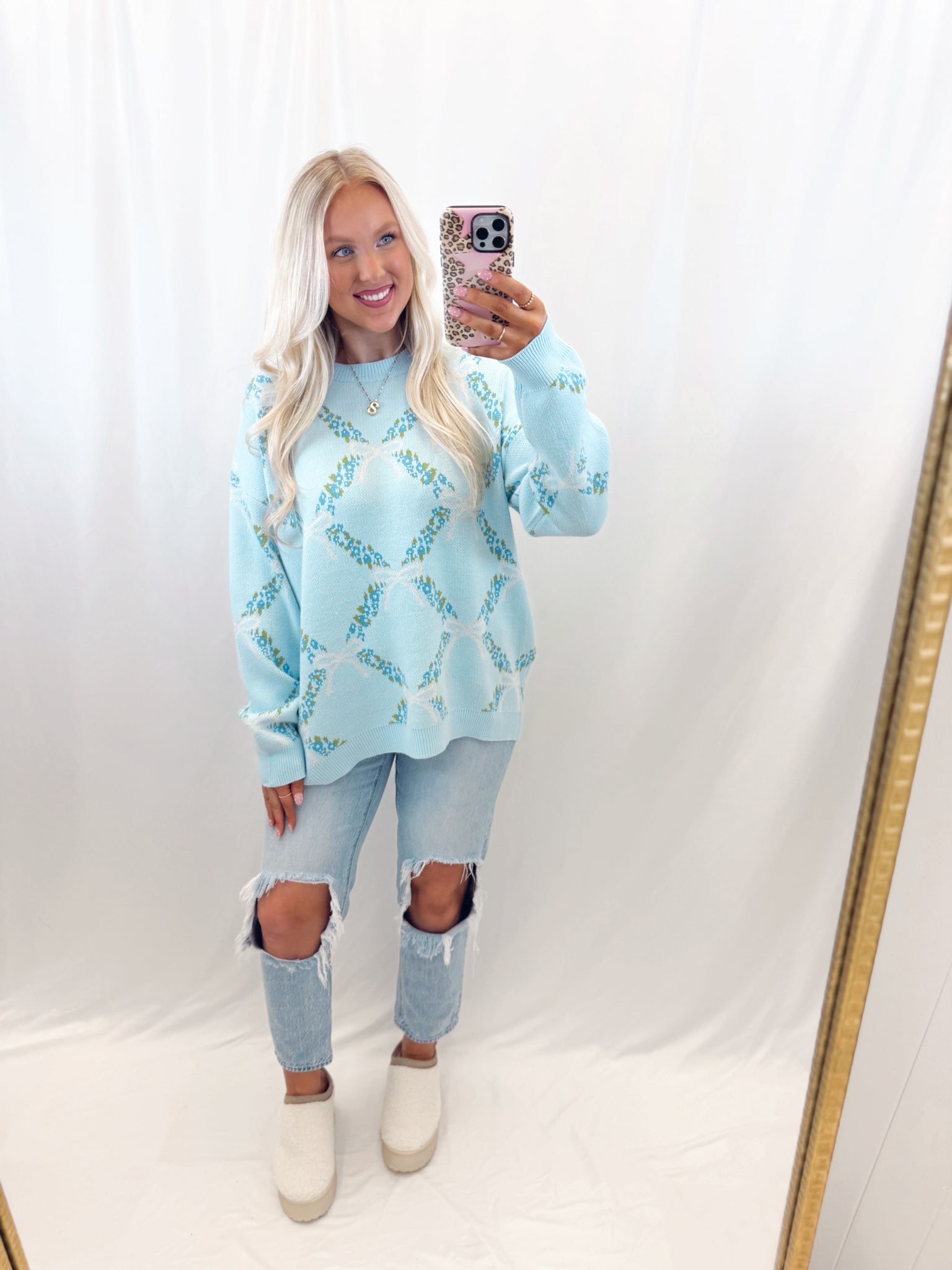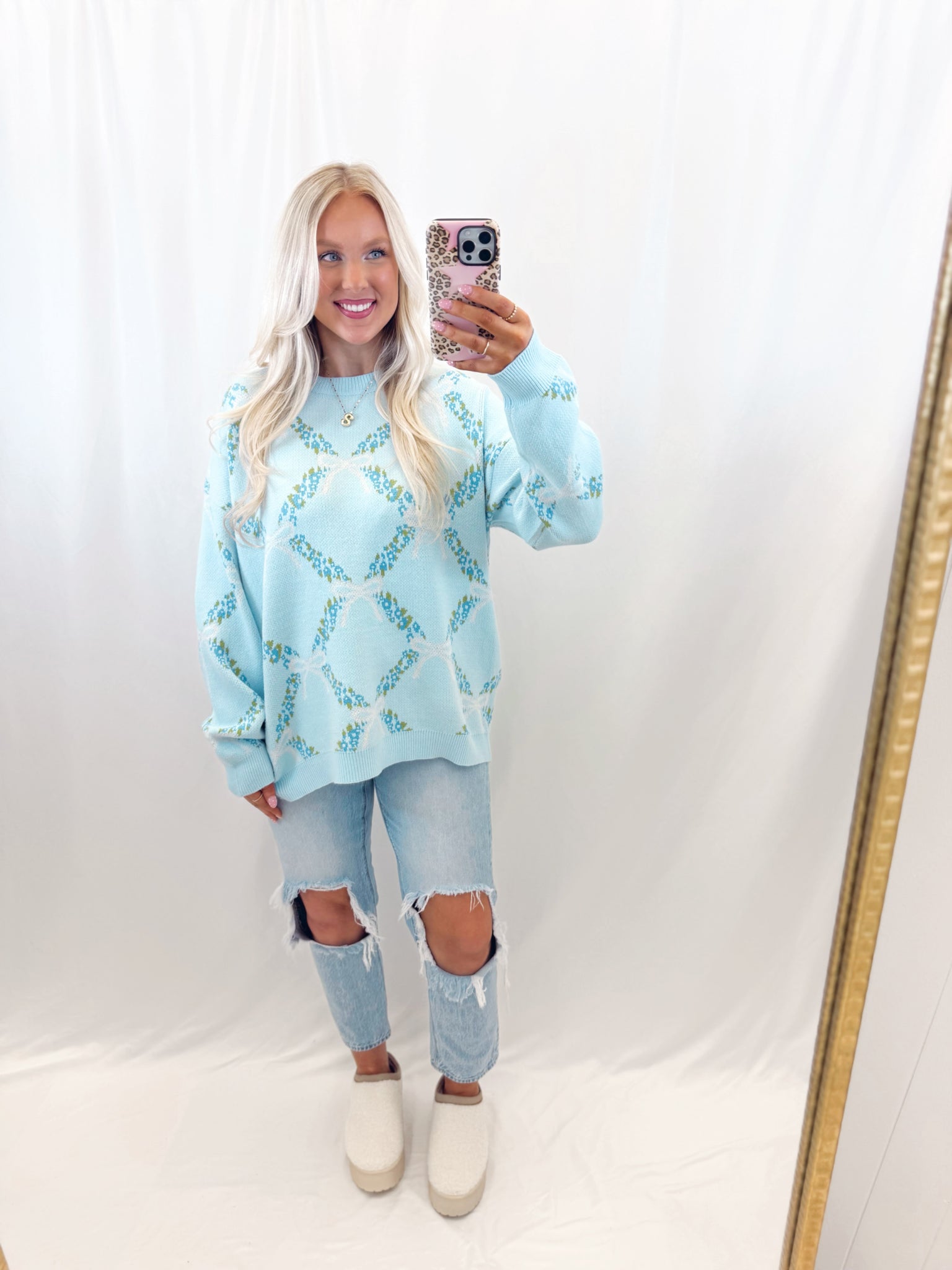 Sarah is 6 months pregnant, a US size 8/10 pictured in a large for an oversized/comfy fit. Very soft lighter-medium weight sweater.