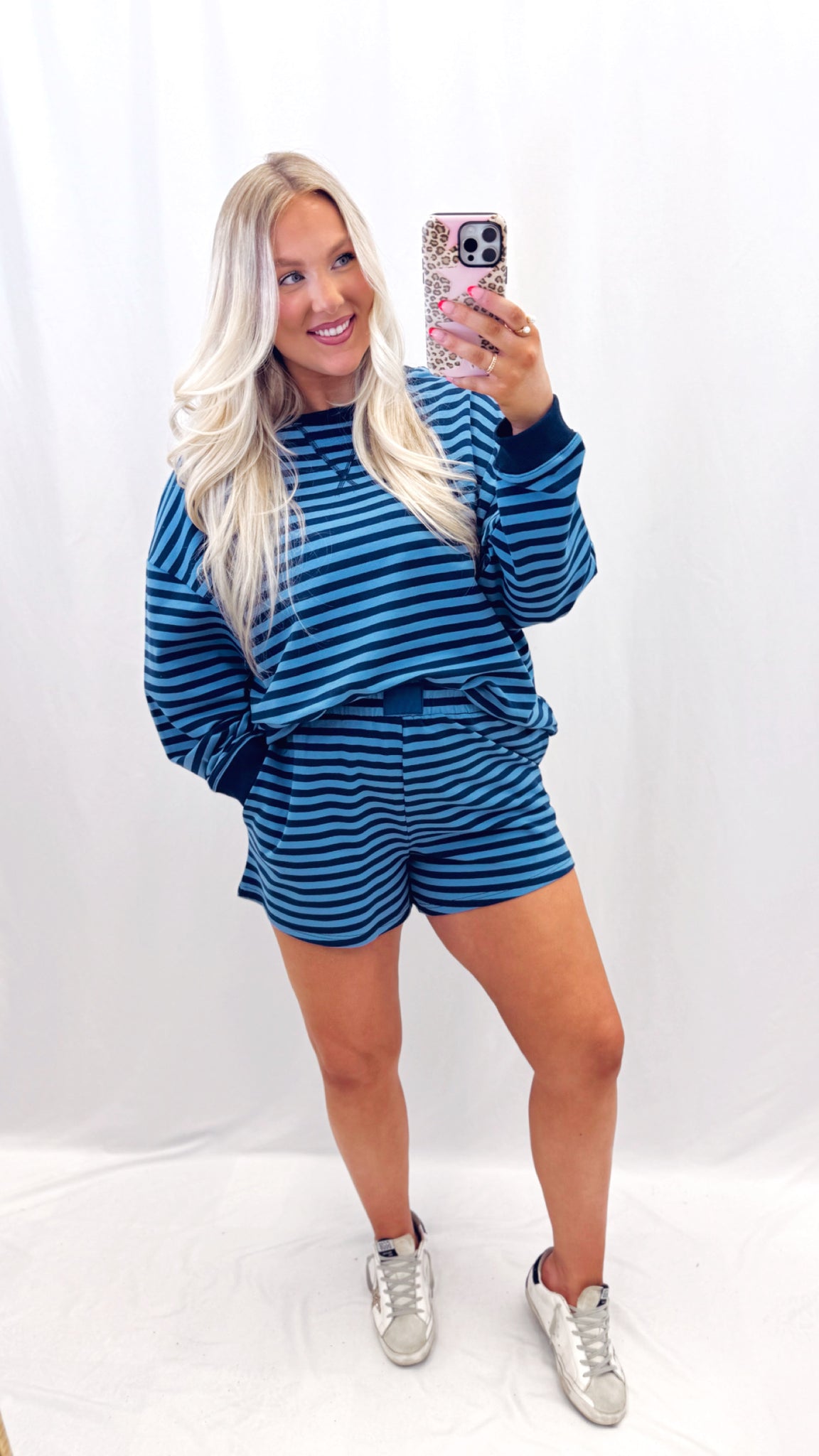 Sarah is 5'6 (37 weeks preg) currently a size large in tops, a size 12 in jeans wearing a size large. Oversized lounge pullover