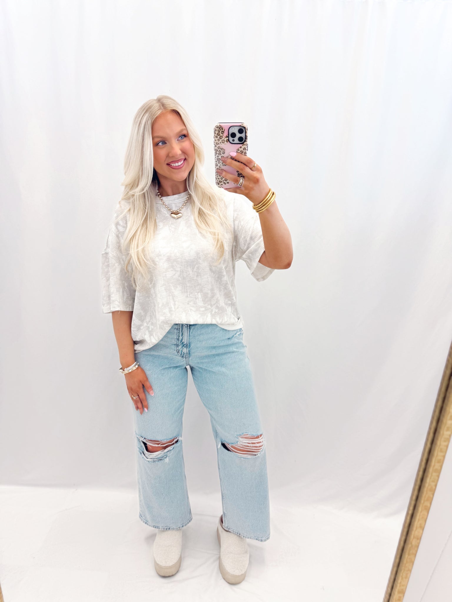 Confidently Camo Ribbed Oversized Tee - WHITE CAMOđź’– 1 small & 1 medium left