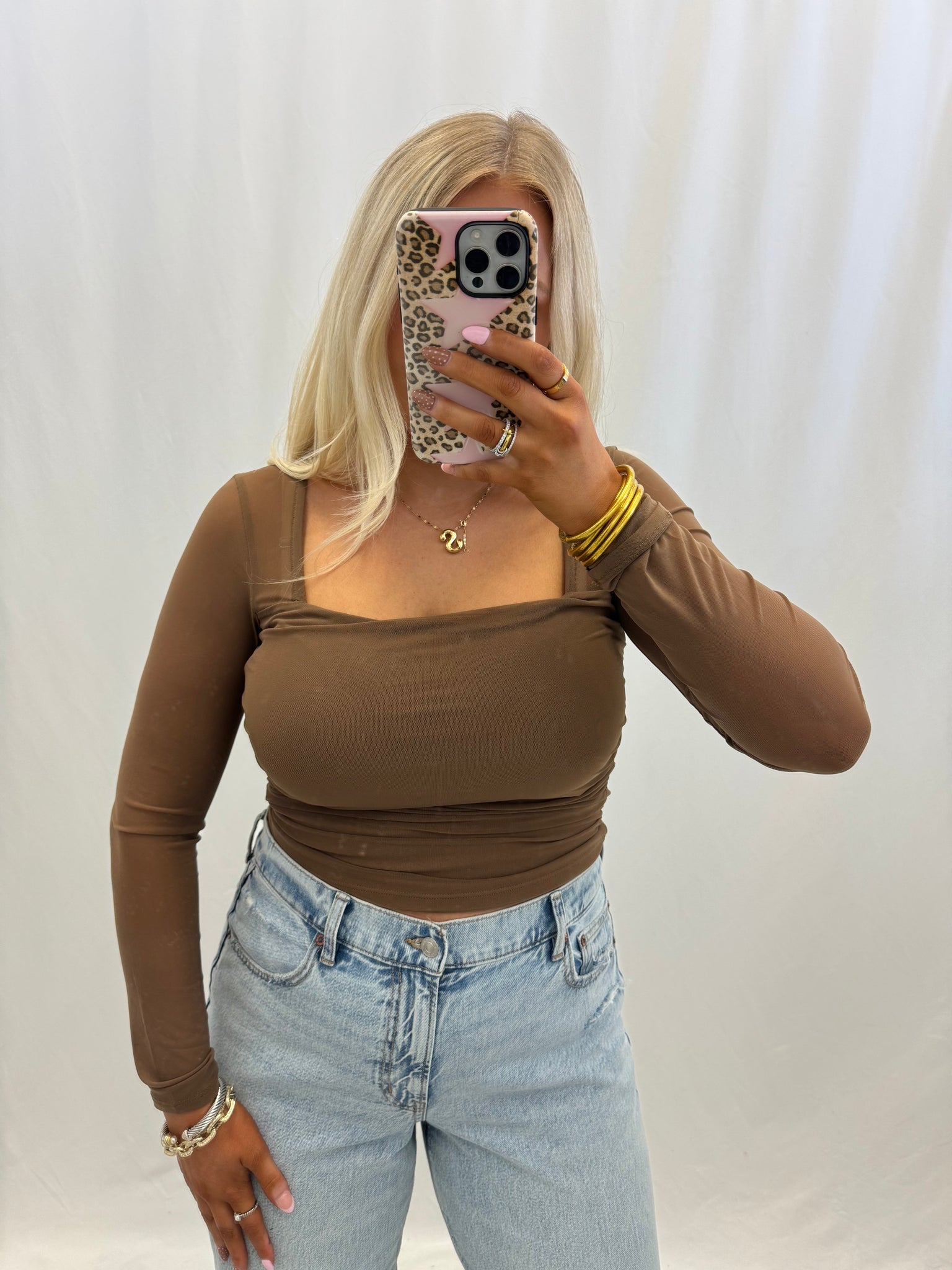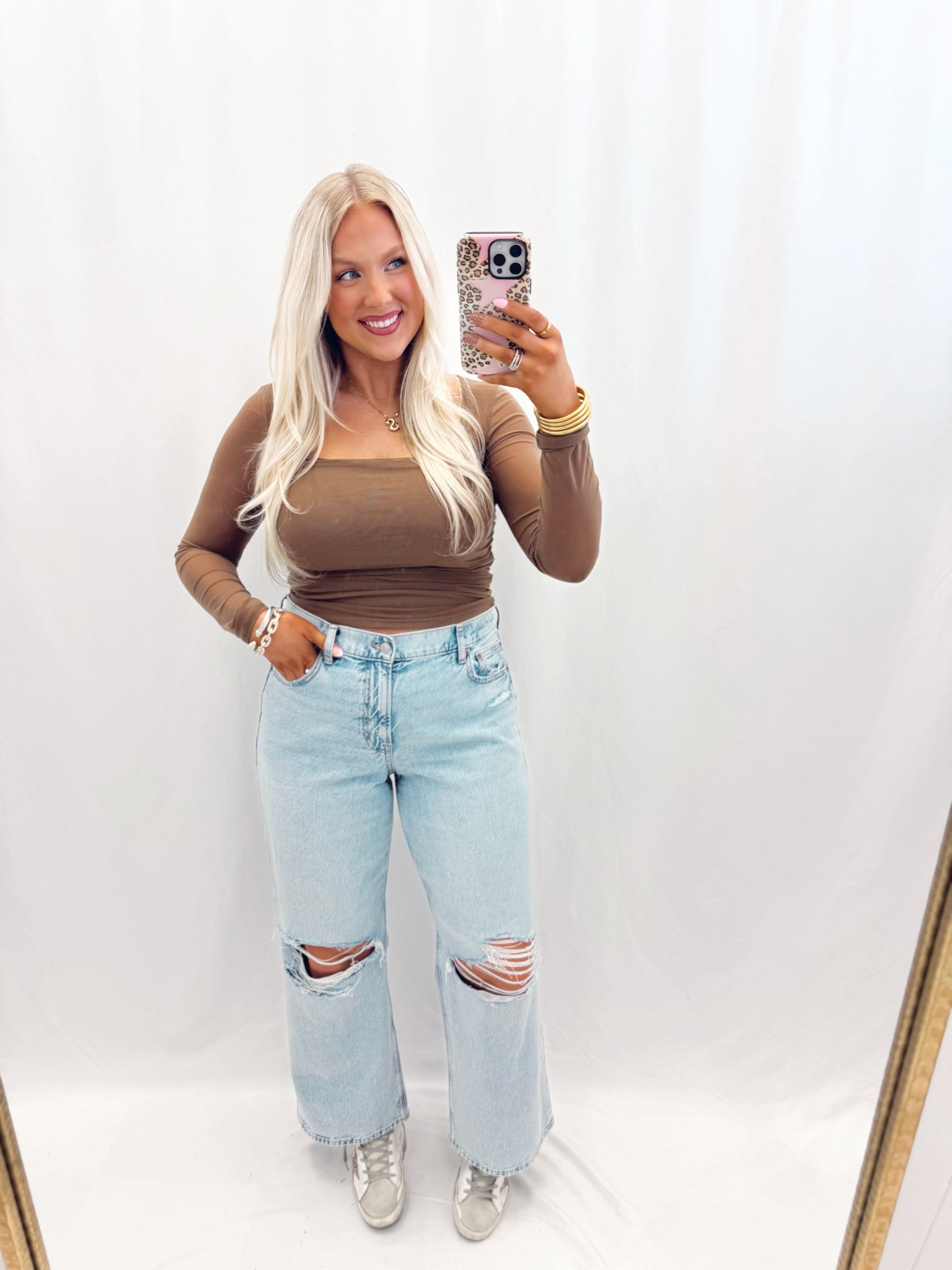 • Load image into Gallery viewer, Going Out Sheer Sleeve Top BROWN