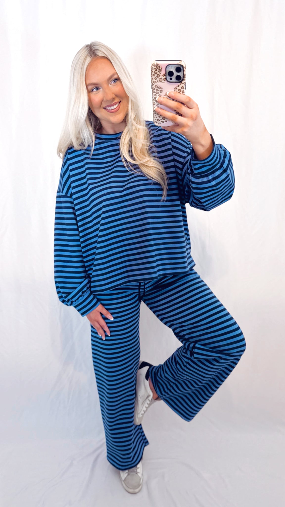• Load image into Gallery viewer, Striped By Me Set (top + pants) NAVY/BLUE