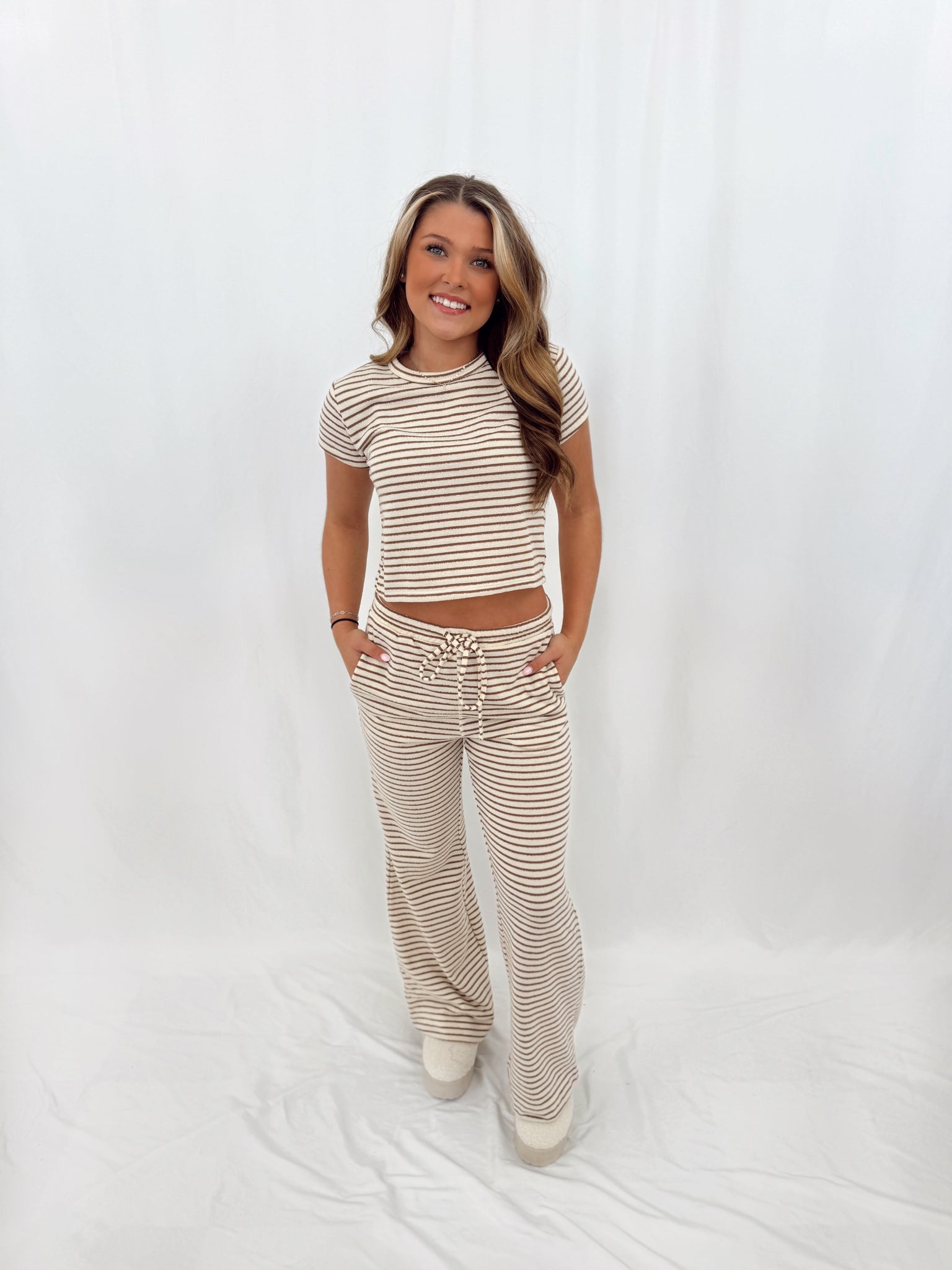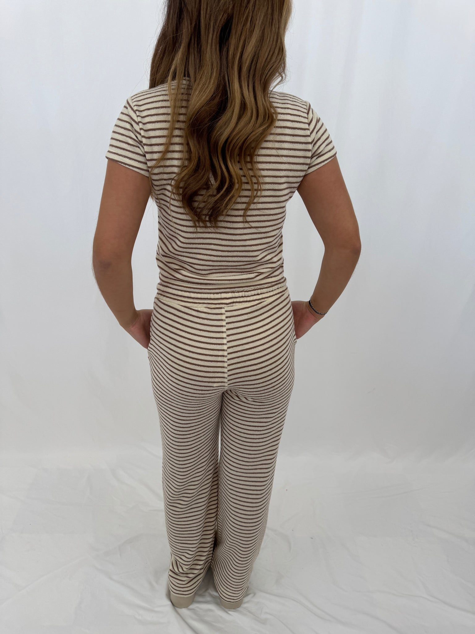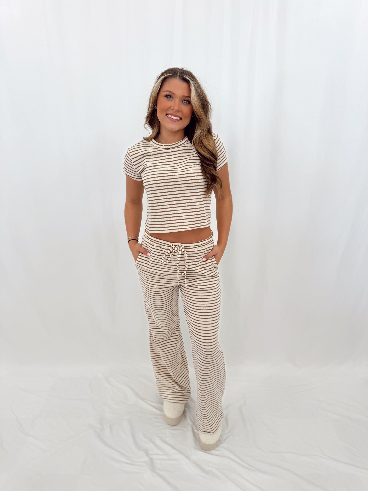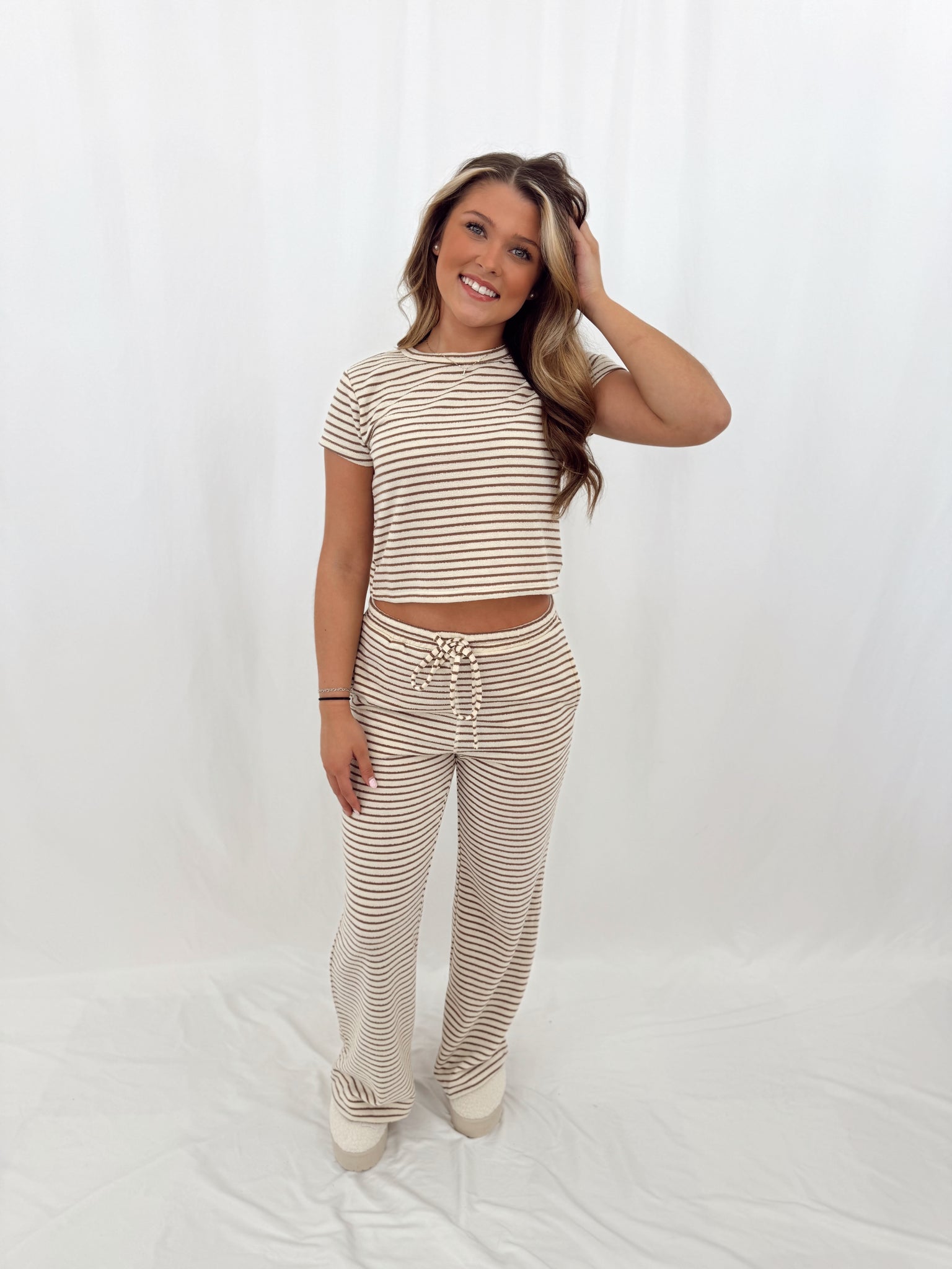 Anna is a true US size small, 3 in jeans, pictured in a size small. Striped knit cozy set
