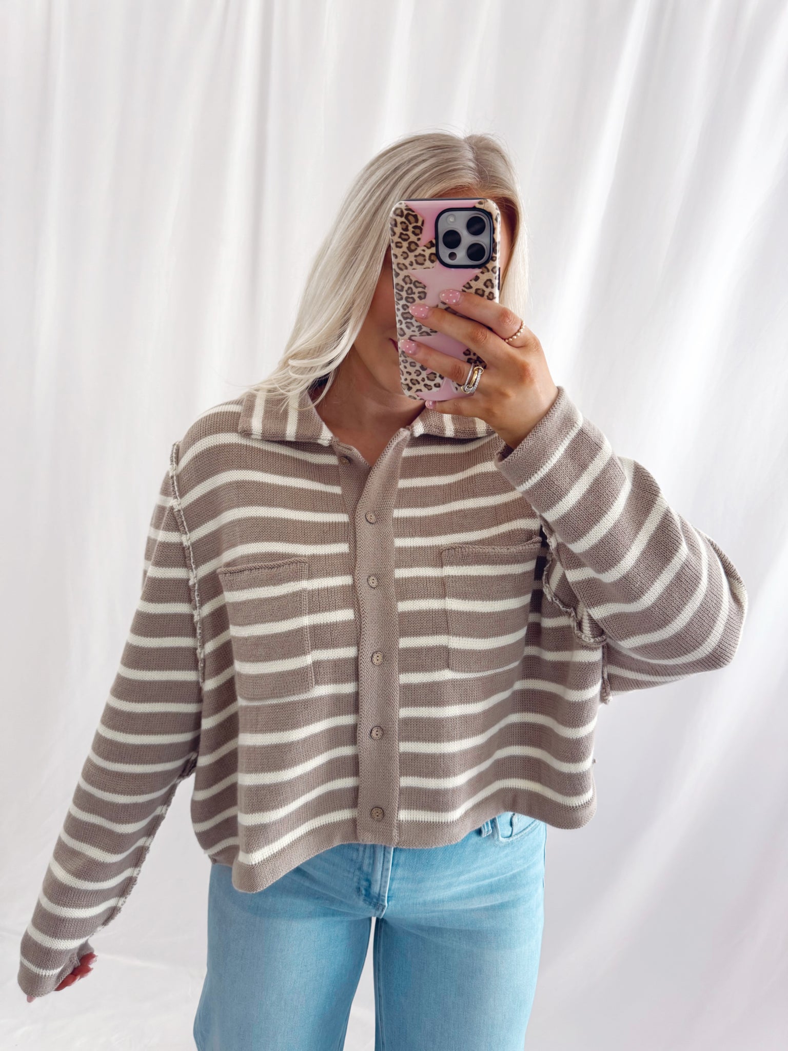 Sarah is 6 months pregnant, a US size 8/10 pictured in a large for an oversized/comfy fit.