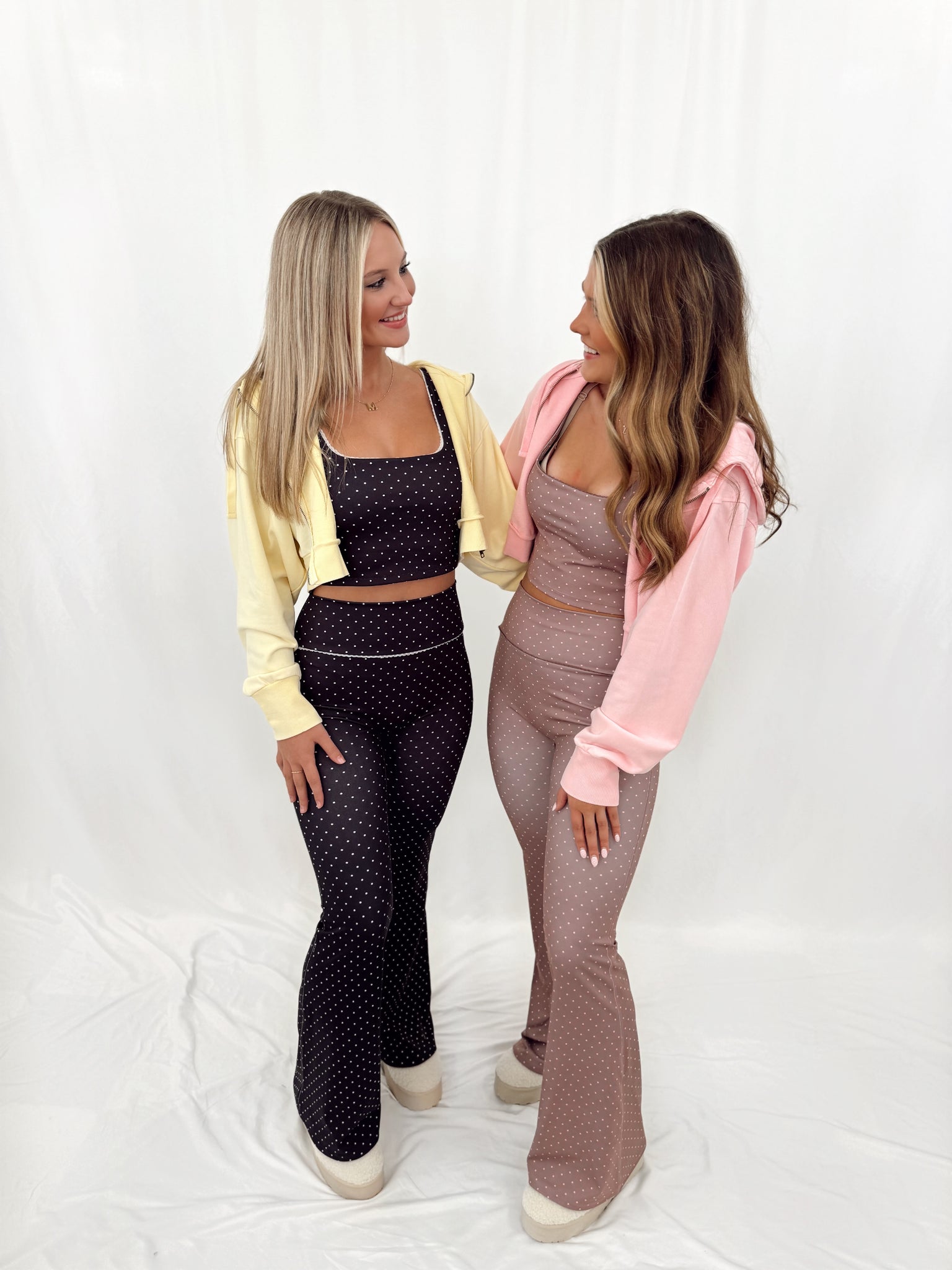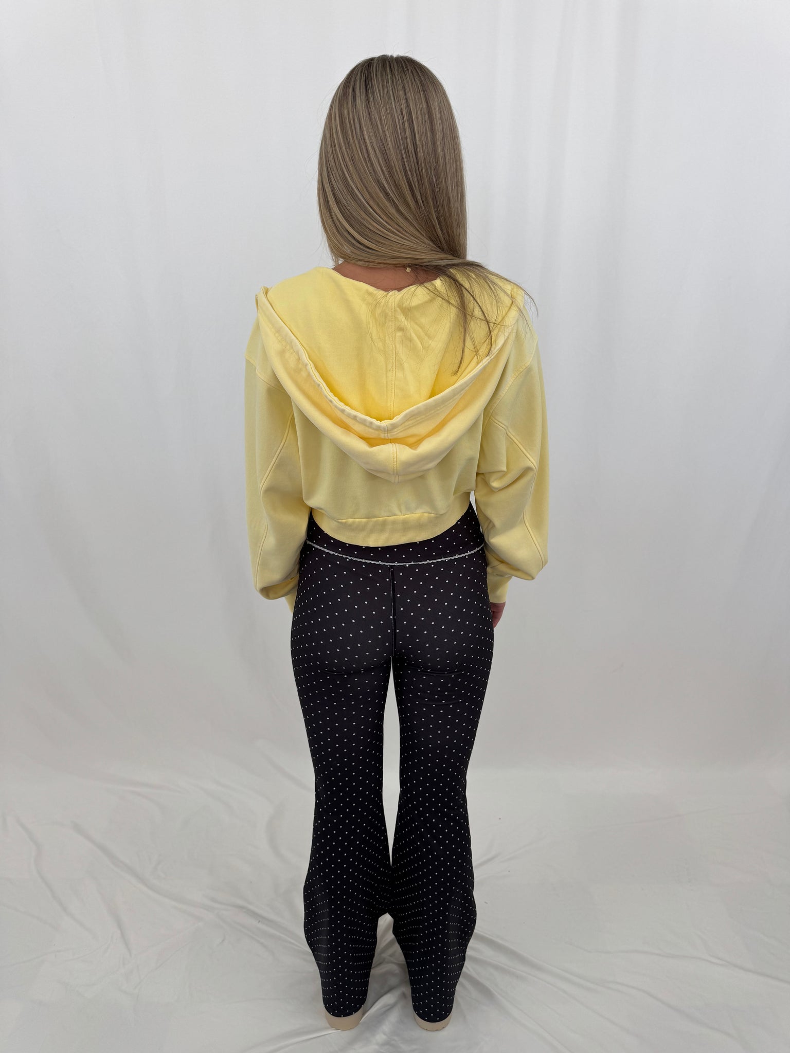 Megan is a true US size small, 3 in jeans, pictured in a size small. Cropped zip up hoodie. Slightly washed. Cute with yoga pants. Megan has it paired with our Move Muse set.