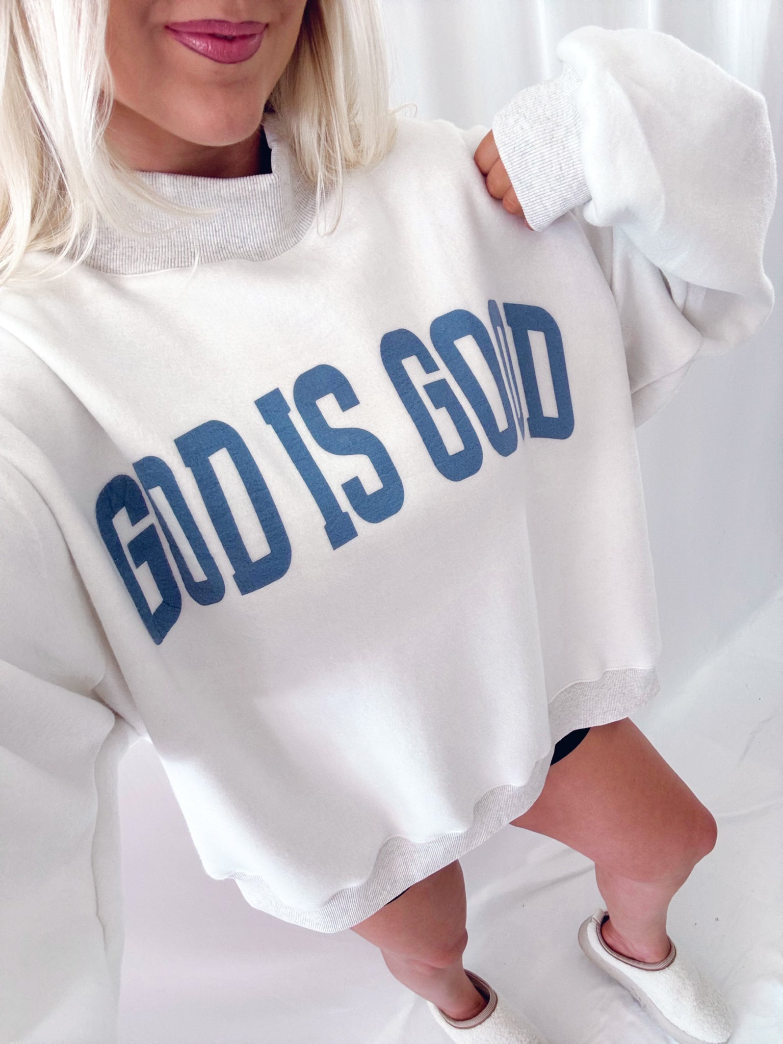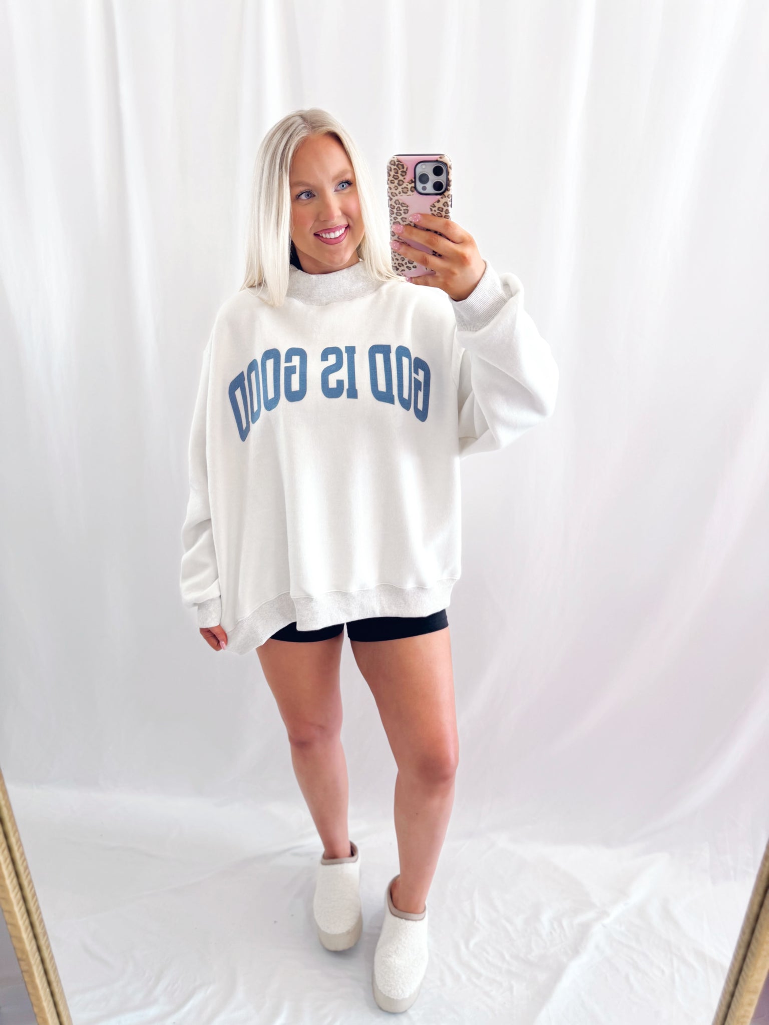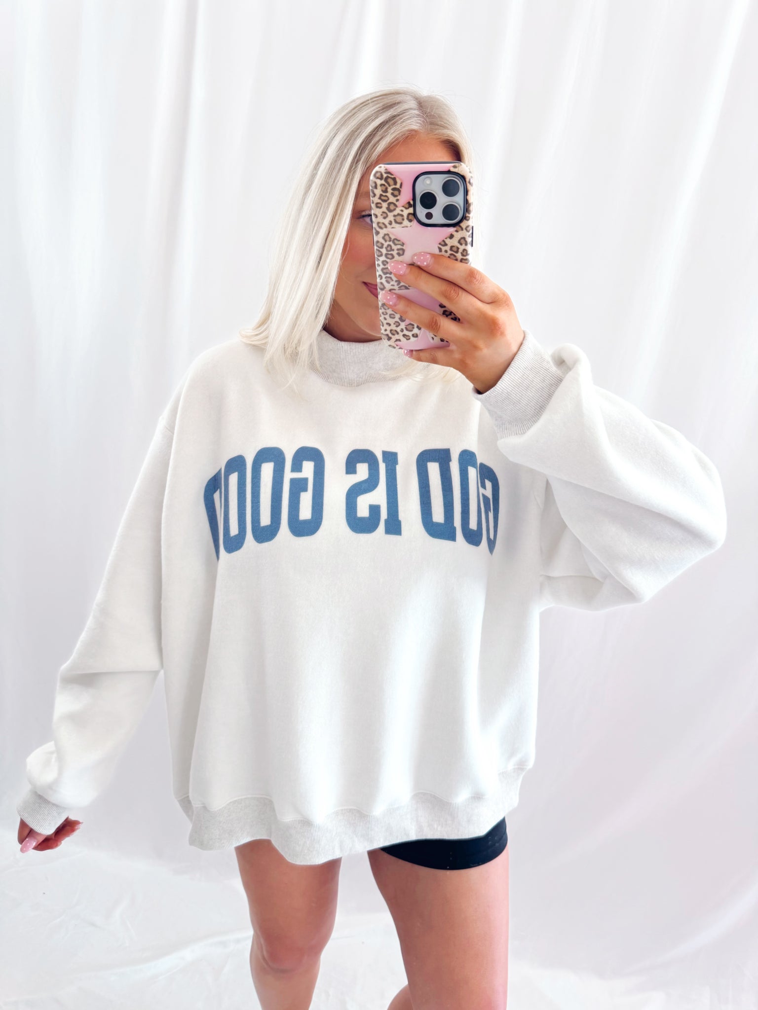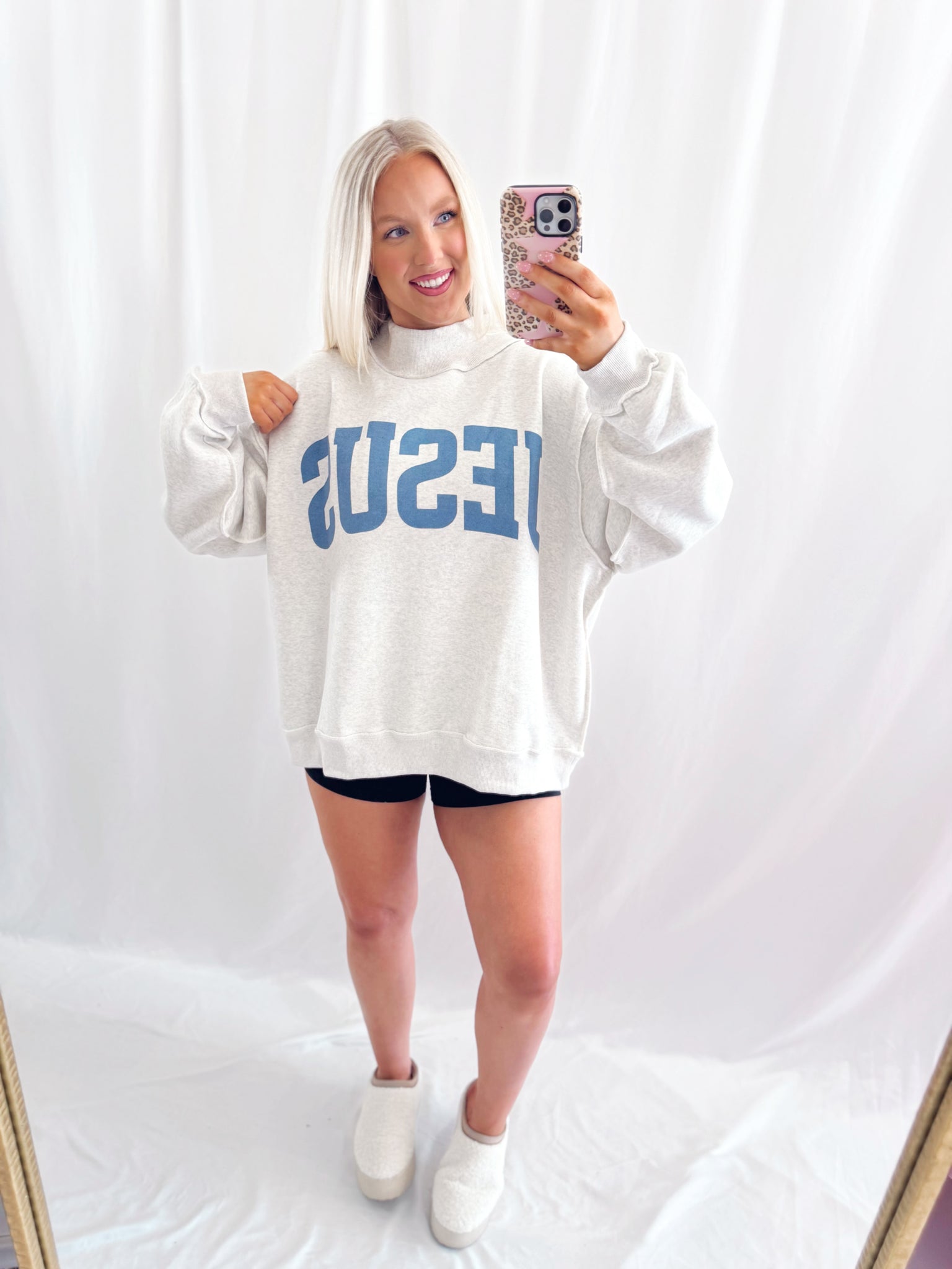 Sarah is 6 months pregnant, a US size 8/10 pictured in a L/XL for a very oversized/comfy fit.