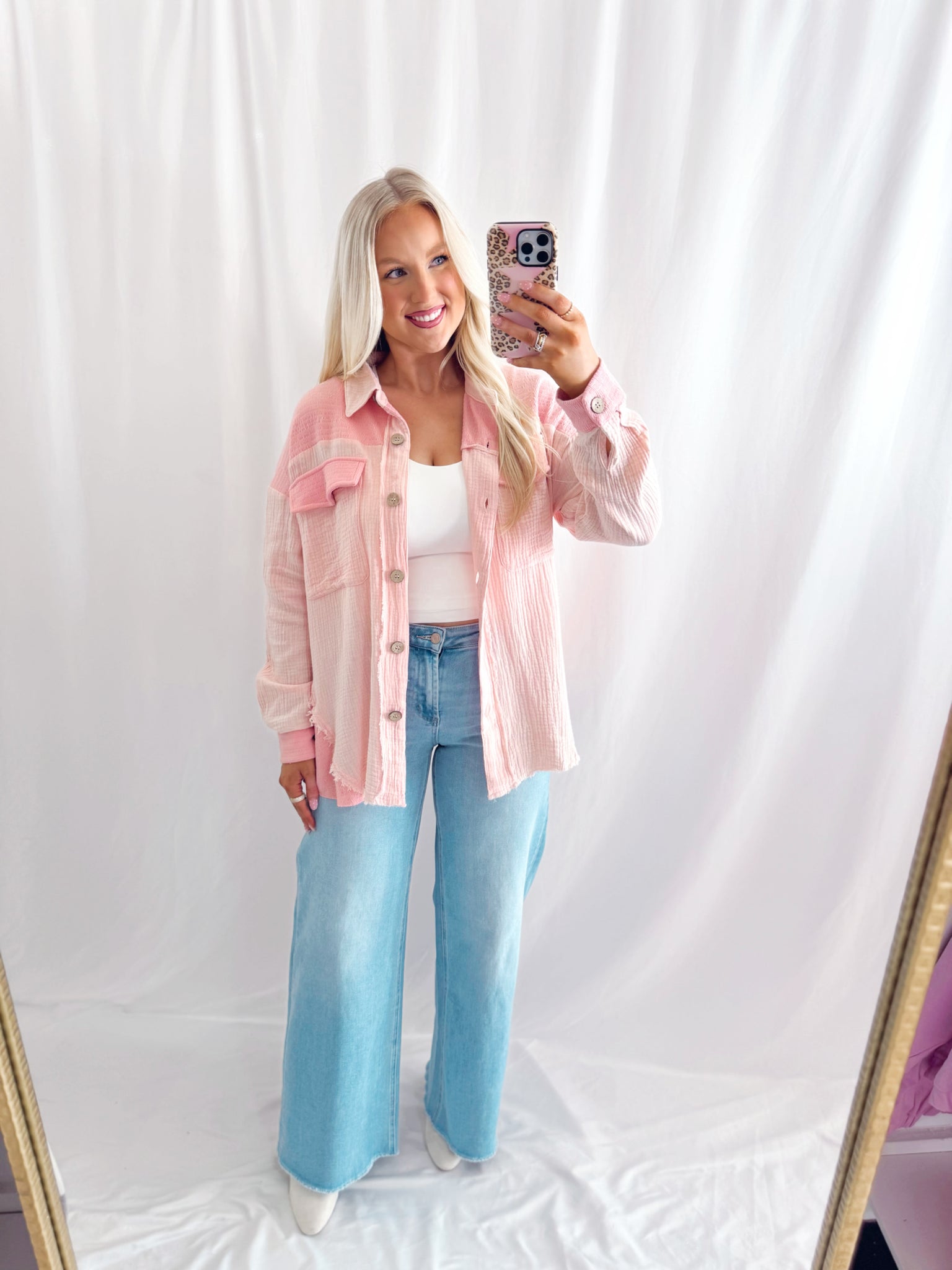 Sarah is 6 months pregnant, a US size 8/10 pictured in a medium. Cotton gauze detail.