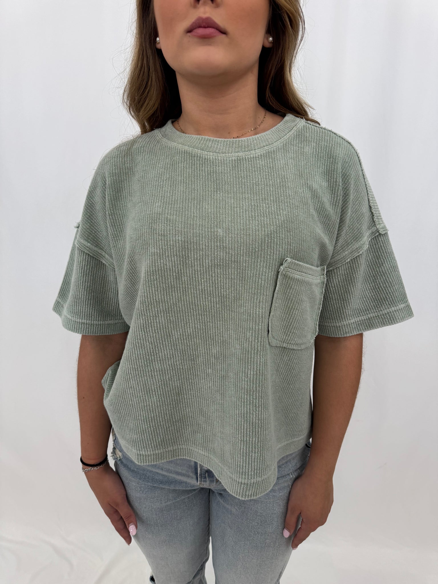 Anna is a true US size small, 3 in jeans, pictured in a size small. Washed ribbed short sleeve tees. Can be worn as is or layered.Â